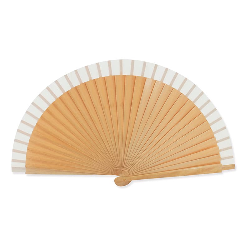 Bonito abanico para regalar a las invitadas de tu evento. Está elaborado en madera lacada de primera calidad. Sencillo y elegante con un remate de tela que donde puedes elegir el color que más te guste.