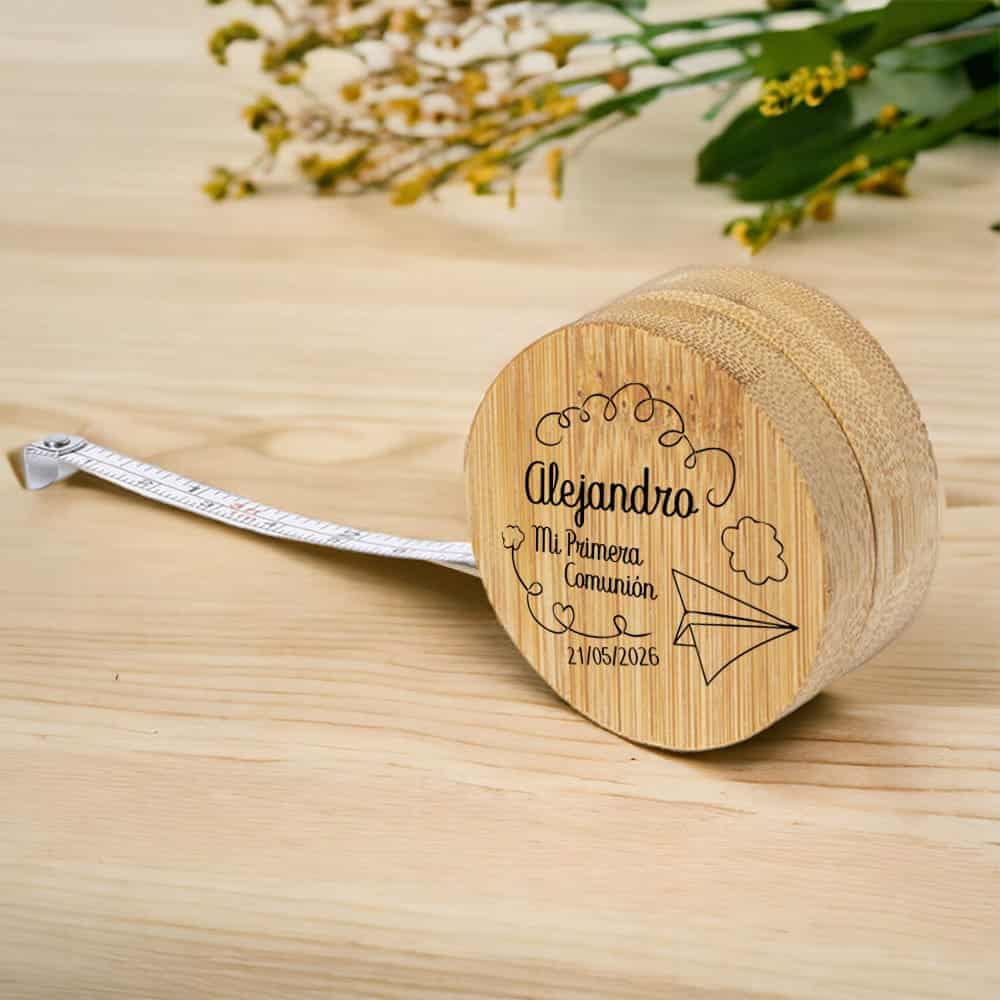 El Flexómetro de Bambú con Abridor Integrado y Diseño de Avioncito de Papel de Tuyyoshop trasciende lo ordinario para convertirse en una expresión de imaginación, agradecimiento y memorias duraderas. Ideal para conmemorar la Primera Comunión, este regalo personalizado es una manera excepcional de demostrar aprecio a tus invitados, dejando una impresión perdurable de un día repleto de significado y alegría.