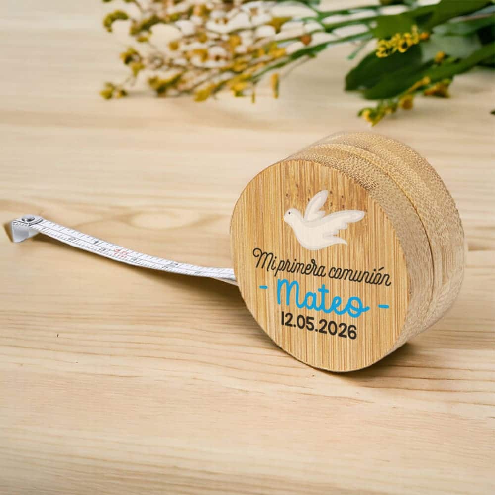 La Comunión es una medida de crecimiento en la fe. Nuestro abridor flexómetro personalizado bambú combina la funcionalidad de una herramienta de medición con el simbolismo espiritual de la paloma, ofreciendo un recuerdo que es único en su clase.