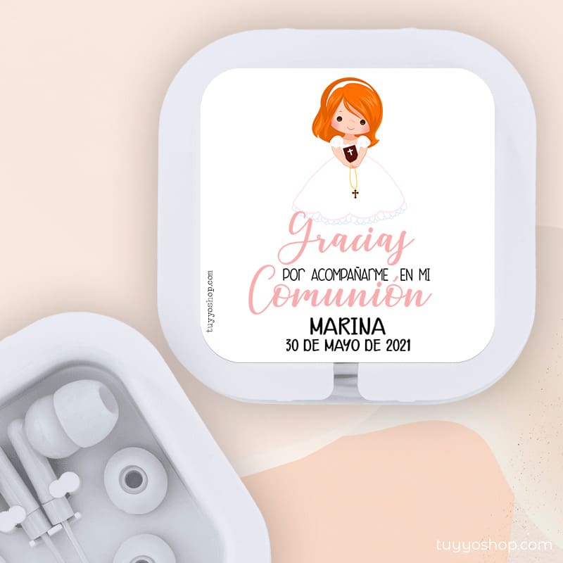 - Auriculares de comunión. Personalizados. Modelo Manuela. Pelirroja.
