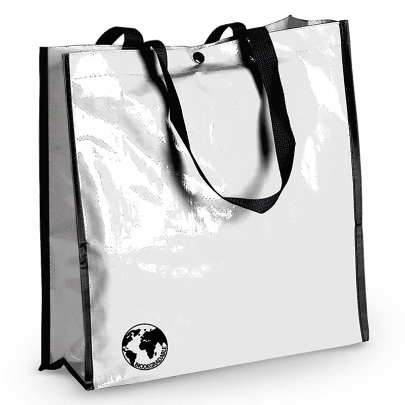 - Bolsa biodegradable. Varios colores. Asas reforzadas. Acabado cosido.