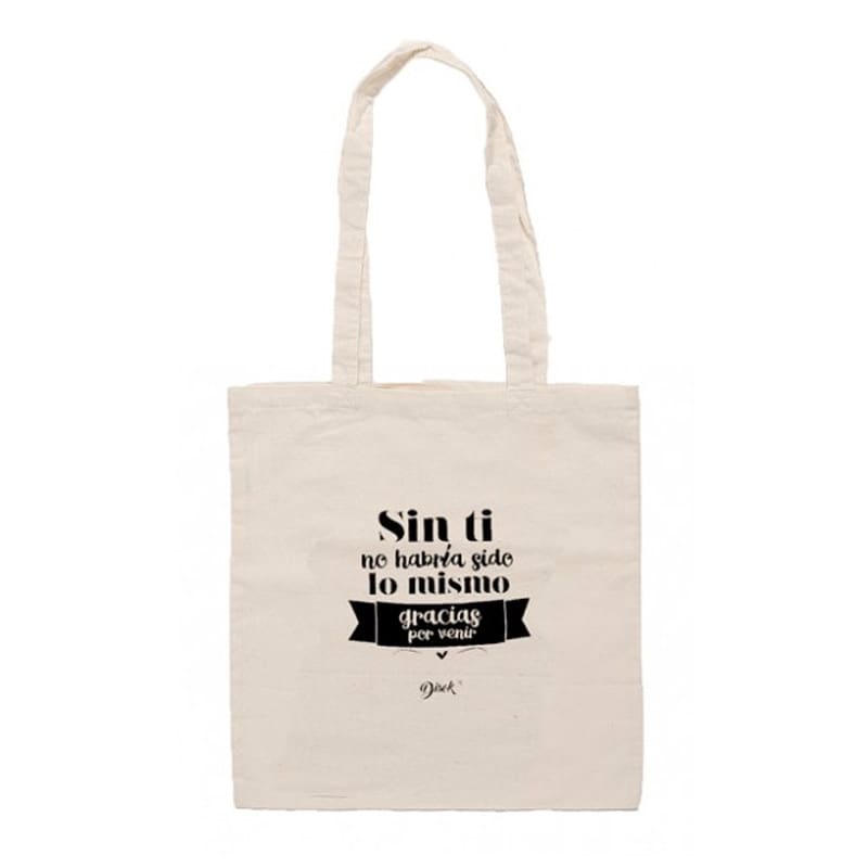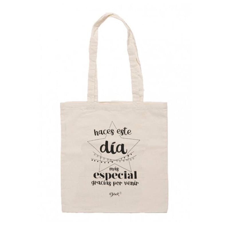 Te presentamos un detalle para sorprender a tus invitados muy práctico y original. Son unas bolsas de algodón/yute de asa larga y con frases de agradecimiento estampadas en una de sus caras. Hay disponible 3 modelos que se sirven siempre surtidos. Ahora no tienes excusa para tener un regalo totalmente diferente. Tus invitados las usarán en su día a día y se acordarán de lo bien que lo pasaron en tu evento!