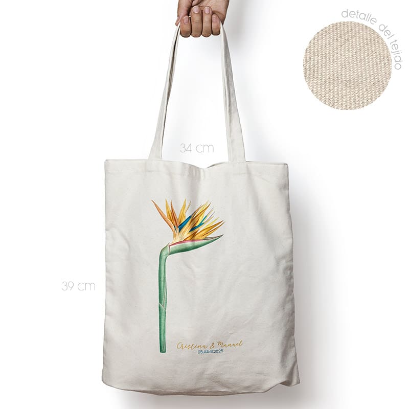 - Bolsa personalizada poliester-algodón. Gran calidad. 34x39cm. Modelo Ave del paraíso