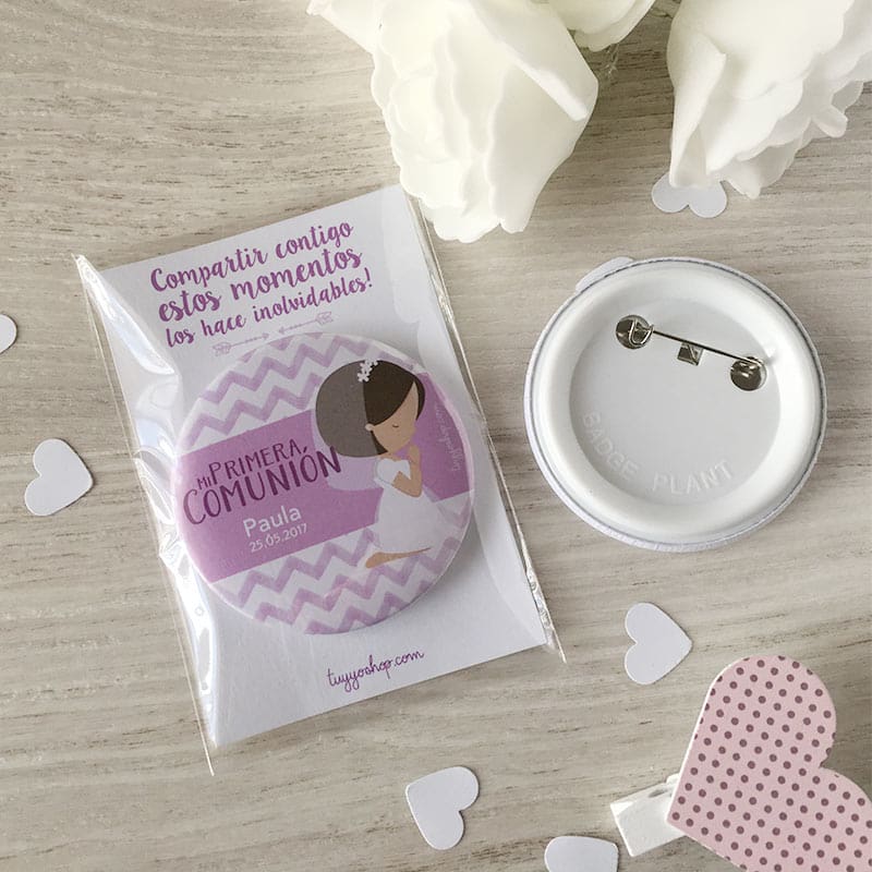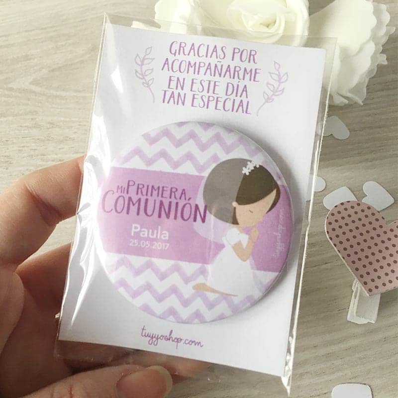 - Chapa para comunión, modelo chica presentado en bolsita de celofán.