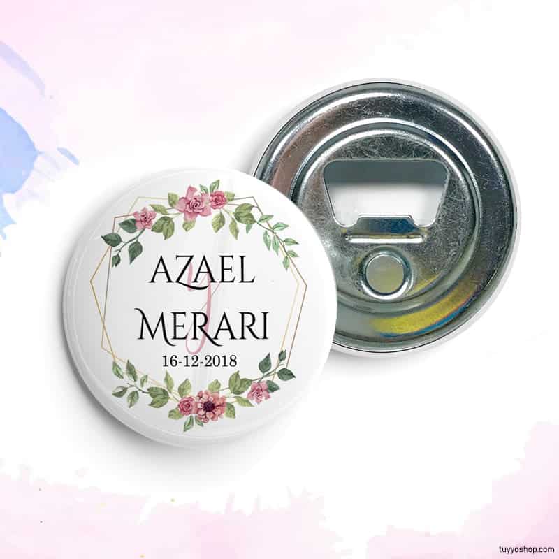 - Chapa personalizada para boda, Valencia. Abridor imán, espejo, imperdible o imán.