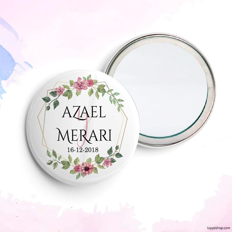 - Chapa metálica con parte trasera disponible en: Abridor imán, espejo, imperdible o imán