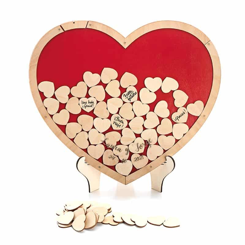 Este Corazón de los Deseos Boda no es solo un objeto decorativo, sino una experiencia para tus invitados. Cada uno de los 70 corazones de madera representa una firma o un pequeño deseo que, al ser depositado, va llenando el marco hasta crear una obra de arte visual. Es el Libro de Firmas Alternativo Madera más elegante y moderno para capturar las emociones de tu gran día.
