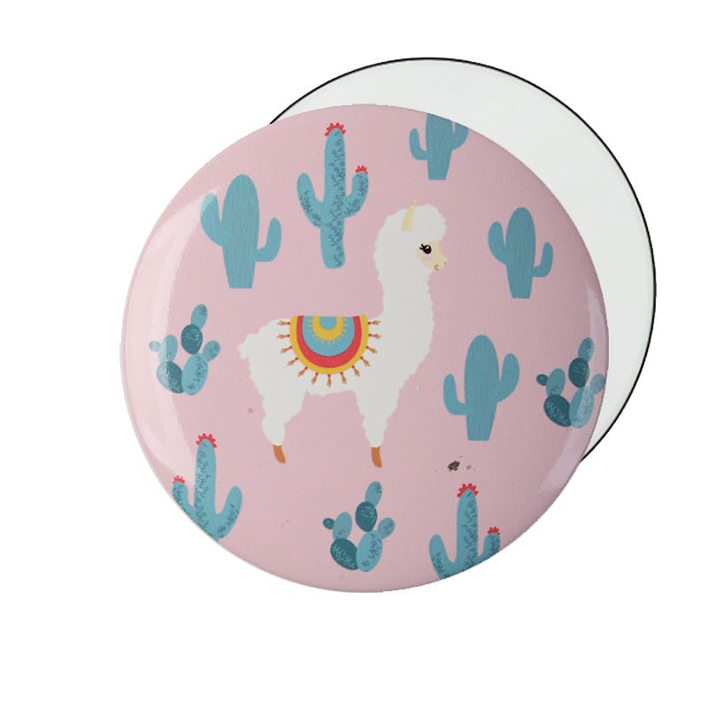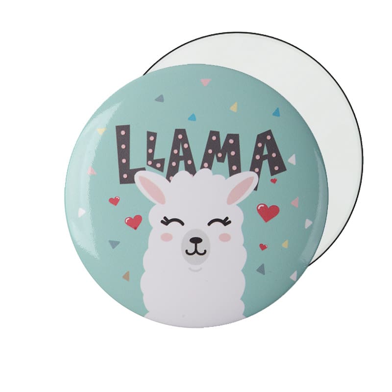 - Por una cara lleva el diseño de Alpaca o Llama y por la otra el espejo
