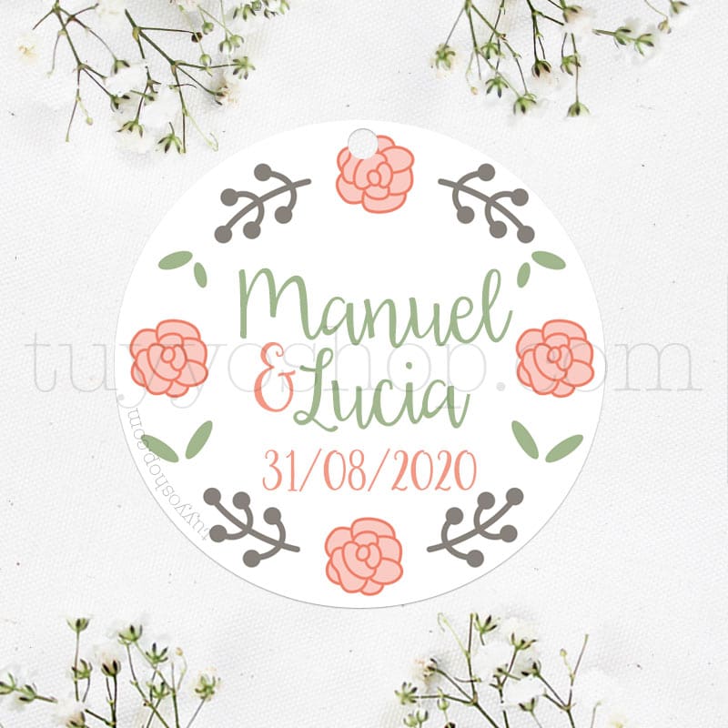 - Etiqueta de boda cuatro rosas.