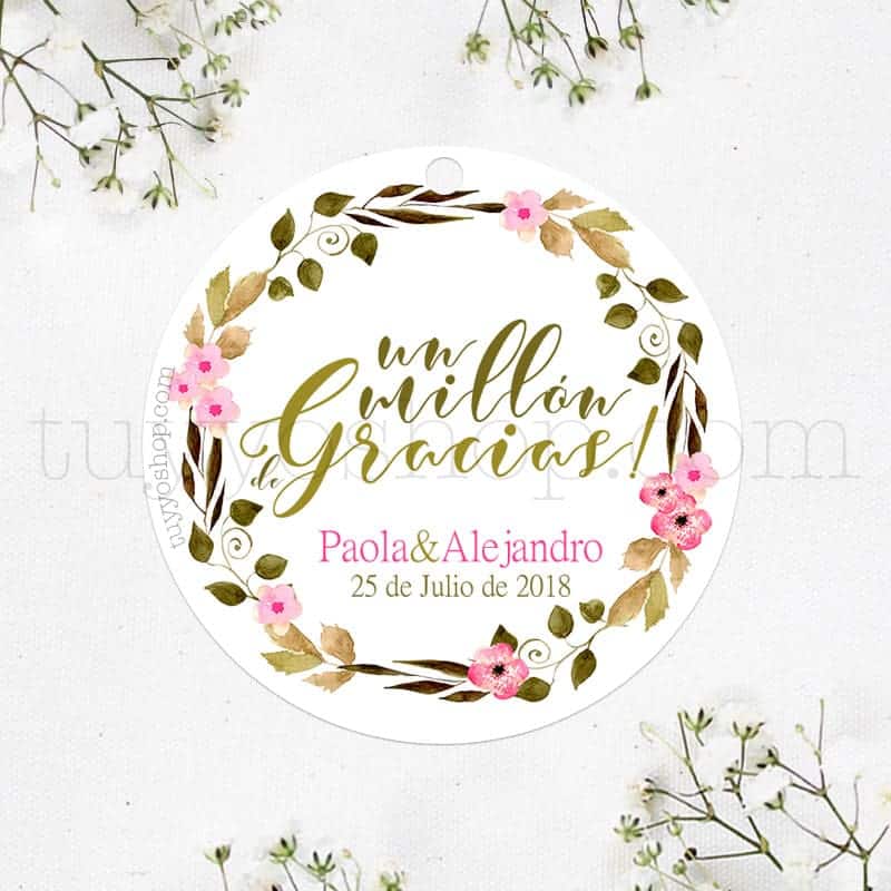 Ahora puedes personalizar los detalles para boda de tus invitados con estas bonitas etiquetas. Tenemos varios diseños disponibles y todos los puedes personalizar con vuestro nombre y fecha. Tienen un tamaño de 4.8cm de diámetro. Las tienes tanto adhesivas como en cartulina.