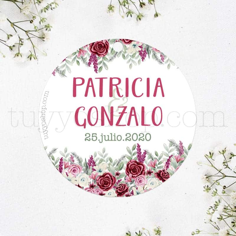 - Etiqueta para detalles de boda. Modelo Burgundy