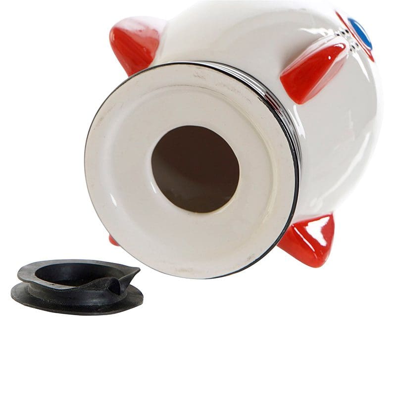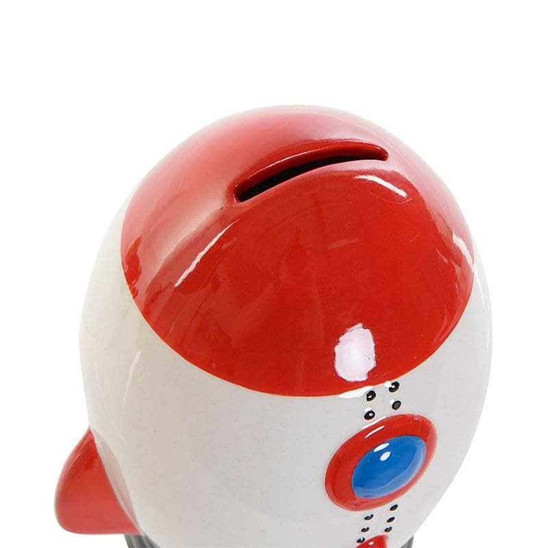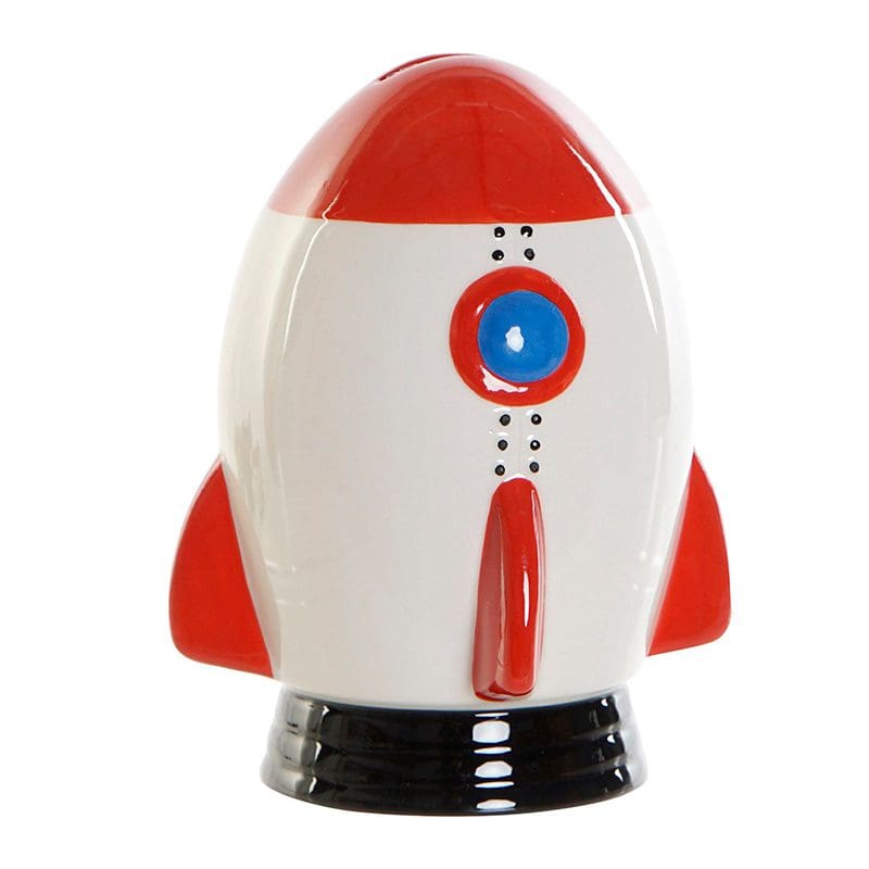 Hucha en forma de cohete. Un regalo práctico para los más peques de tu evento que les enseñará a ahorrar y valorar. Tiene un tapón en la parte inferior para que puedan sacar su dinero sin romperla. Seguro que les encantará!