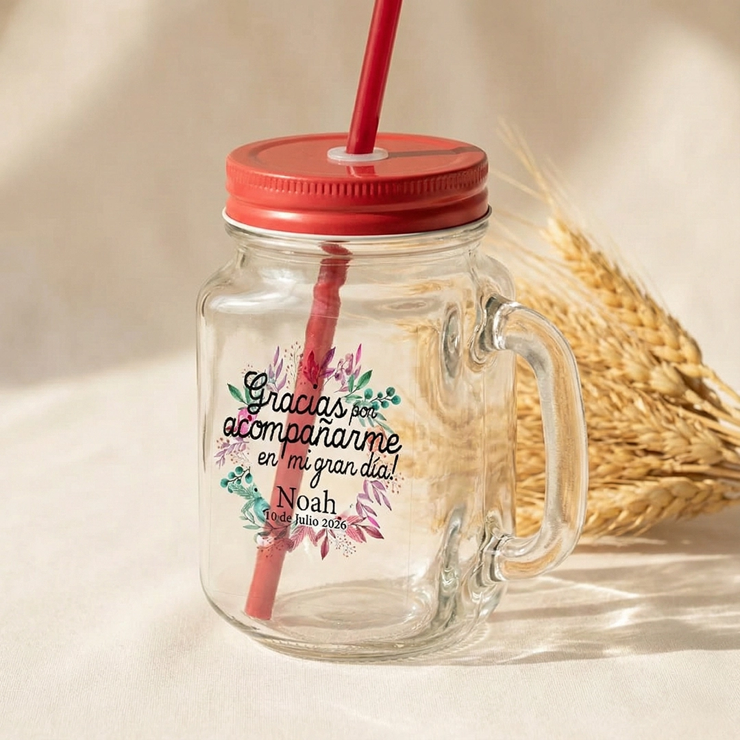 - Jarra cristal con pajita, para comunión. Modelo Abril. 8 colores. 500ml