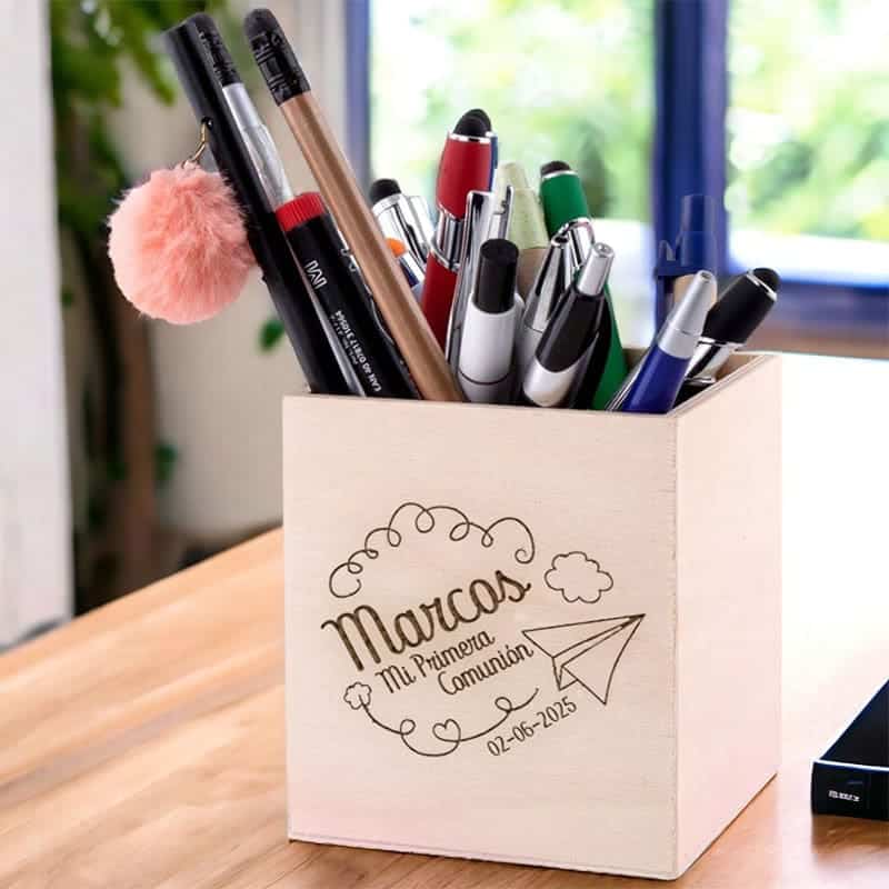 - Personalización mediante grabado láser directamente sobre la propia madera.