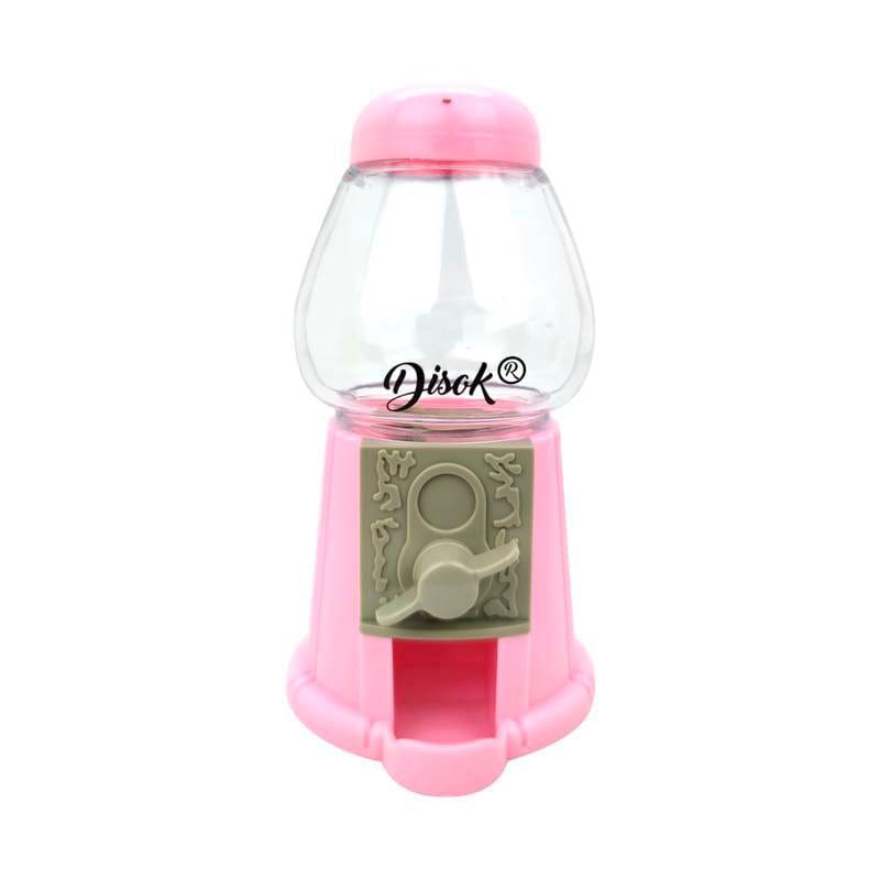 Preciosa Máquina de Chicles Vacía Rosa, imitando las antiguas máquinas expendoras de bolas de chicles del sigo pasado, en las que echando una moneda comprabas tu chicle. Un original regalo para los más peques de tu evento que les encantará. Sorpréndeles con una máquina expendedora de chicles que podrás rellenar con las chuches o frutos secos que más te gusten. Tiene una capacidad de 50gr.
