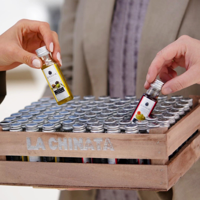 El aceite de oliva La Chinata es sinónimo de excelencia. Regalar esta mini botella de aceite La Chinata es ofrecer un trozo de la tradición y el sabor de la mejor gastronomía española a tus invitados.