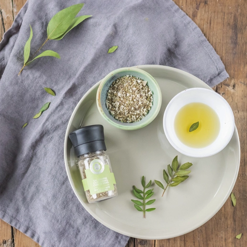 - Molinillo de Sal Marina en escamas con Hierbas. 35grs.