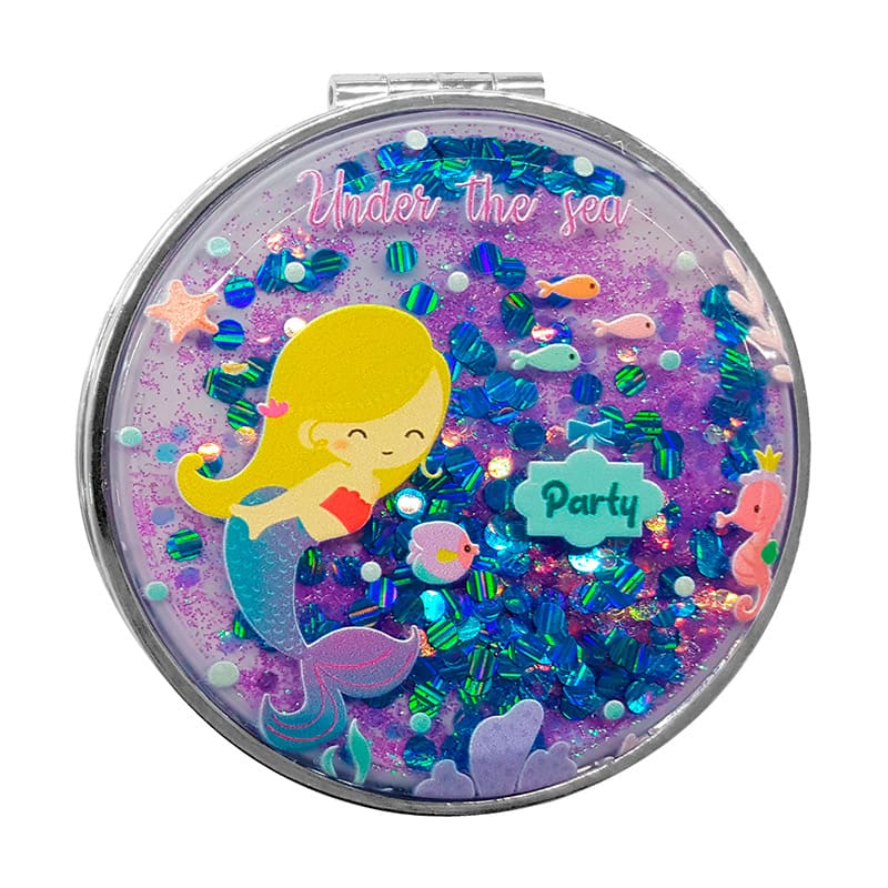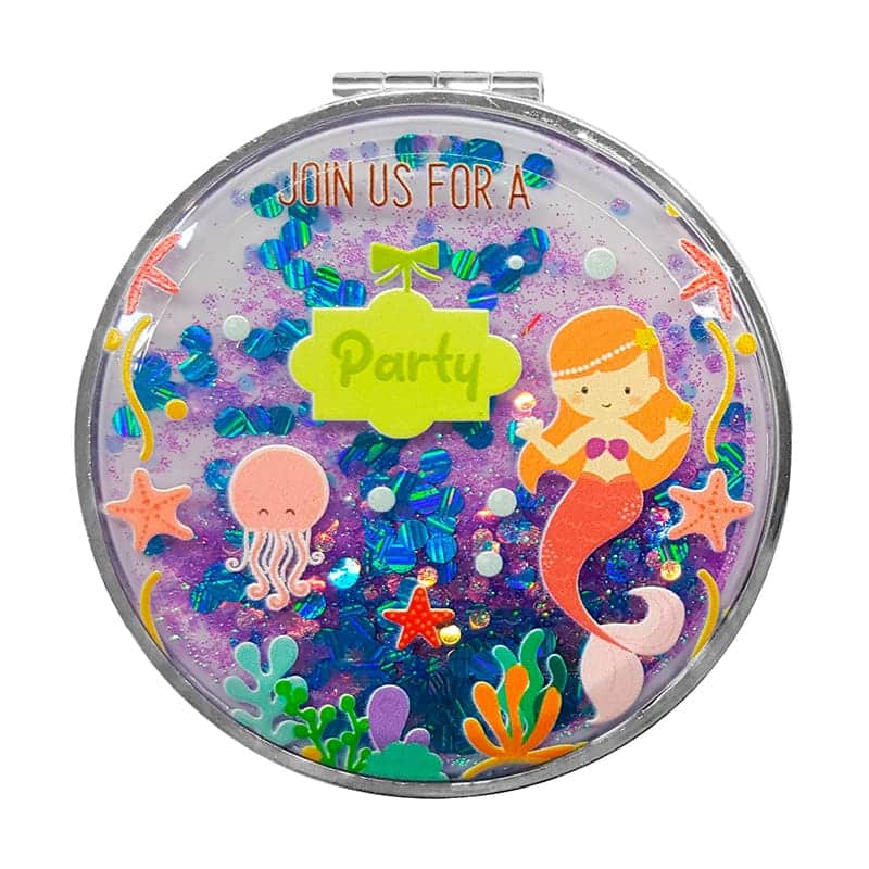 Te presentamos un bonito espejo con diseño de sirena con purpurina. Está disponible en 4 modelos que se sirven siempre surtidos. Es perfecto para que tus invitadas lo lleven siempre en el bolso. Seguro que este espejo les saca de más de un apuro!