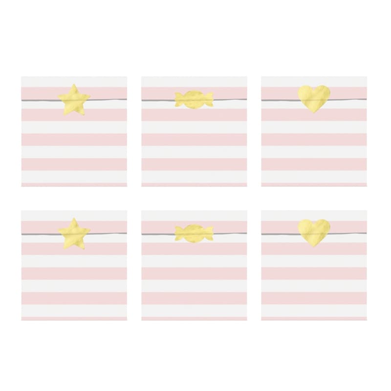 - Pack 6 bolsas para regalo Rayas Rosas. Incluye pegatinas.
