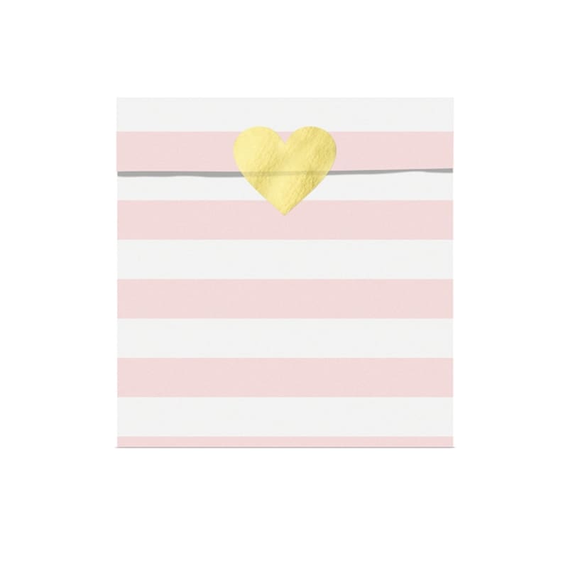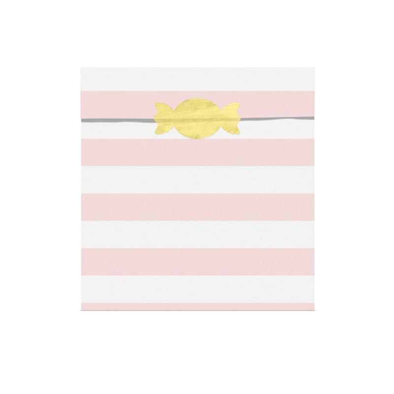 Bonitas bolsas de presentación con Rayas rosas y blancas y pegatinas doradas a modo de cierre. Son perfectas para presentar los detalles de tu evento. El precio es por el pack de 6 unidades. Incluye los adhesivos para que puedas conseguir la presentación perfecta. Hazte con ellas antes de que agoten!