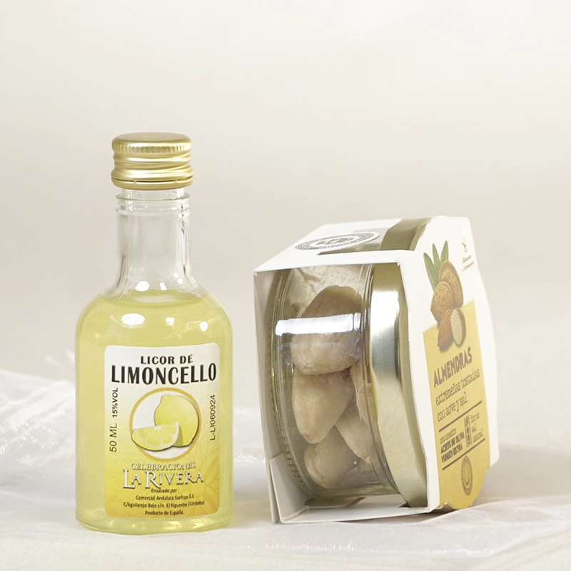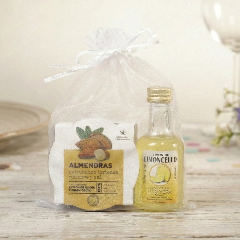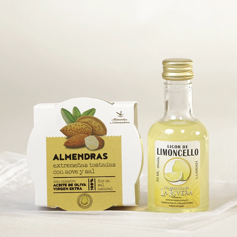 ¿Buscas un detalle que tus invitados disfruten de verdad? Olvídate de los adornos y regala una experiencia gastronómica. Este pack combina el crujido salado de unas almendras premium con el sabor intenso de un buen licor, convirtiéndose en el “momento aperitivo” perfecto para recordar tu celebración.