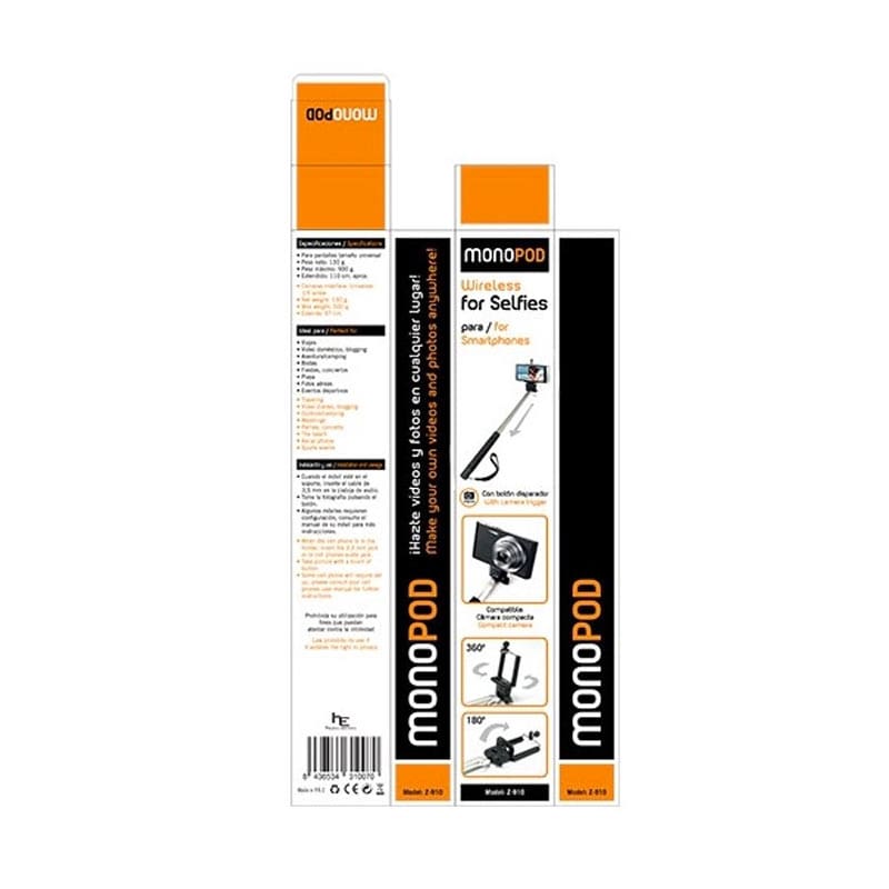 - Palo de selfie con botón disparador