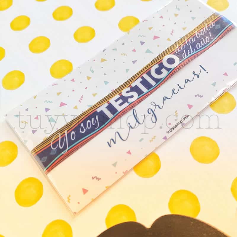 Pulseras para regalar a los testigos de tu evento. Con un original diseño inspirado en motivos de temática étnica. Vienen presentadas en un blister de cartón decorado y dentro de una bolsa de celofán. Como complemento es perfecto. Crearás un bonito vínculo con esa persona que será testigo de vuestro gran día. Precio unitario.