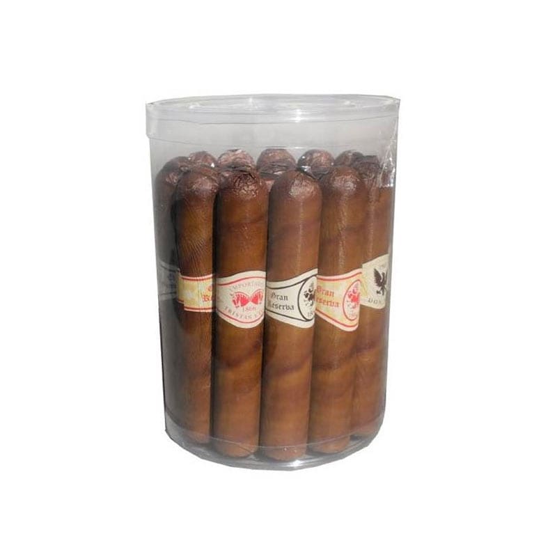 Venta por Caja: Los puros de chocolate en caja se venden en cómodas cajas de 20 unidades, facilitando la compra por volumen para celebraciones.