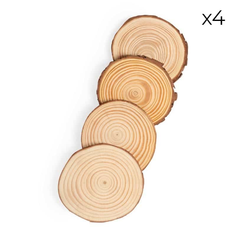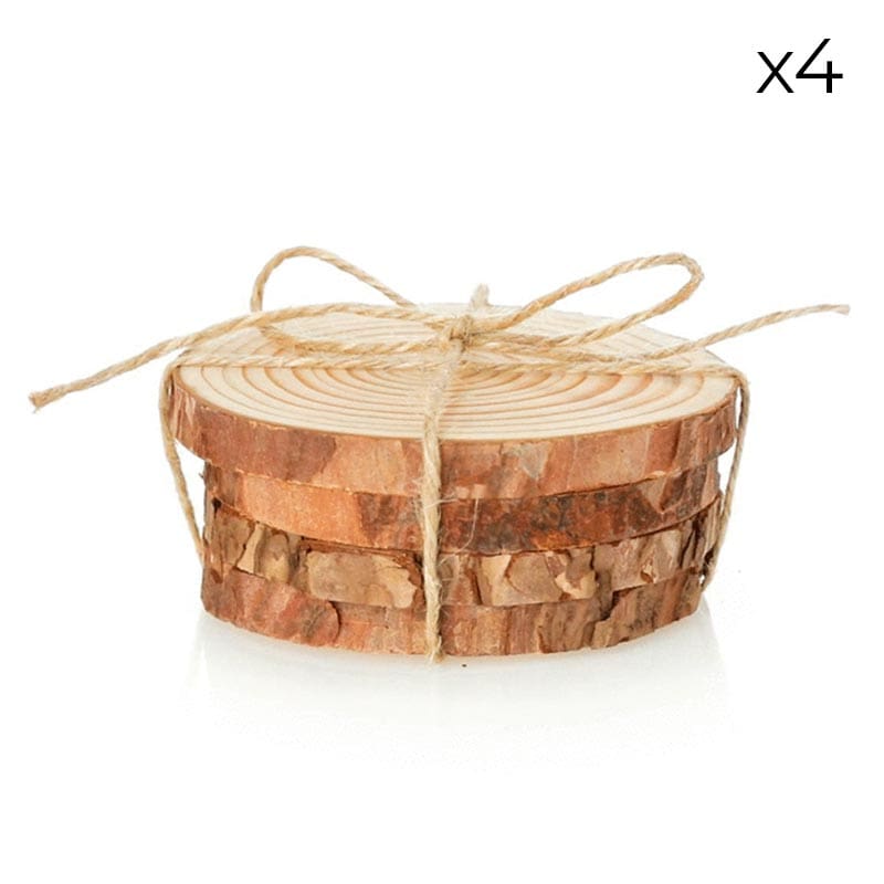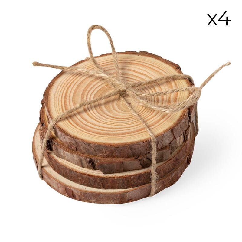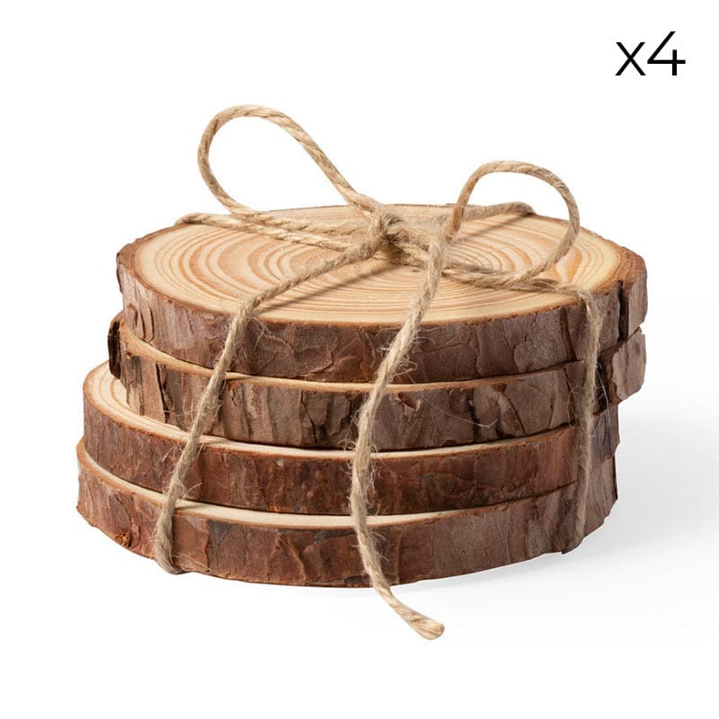- Set de 4 posavasos, pino natural, incluye cuerda de yute
