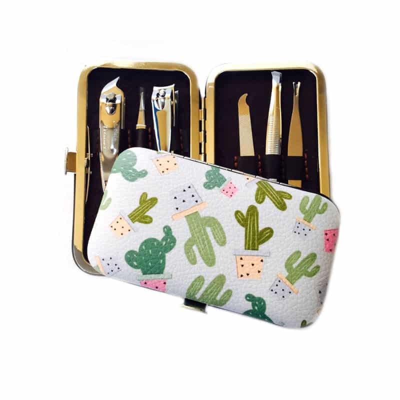 Nuevo set de manicura para regalar a las invitadas de tu evento. Se trata de un bonito conjunto de 6 accesorios dentro de un estuche de polipiel con diseño de cactus, tiene un cierre tipo clic y es sin duda todo un detalle de boda para tener en cuenta y sorprender a todas tus invitadas. Seguro que le darán uso y lo llevarán siempre en el bolso!