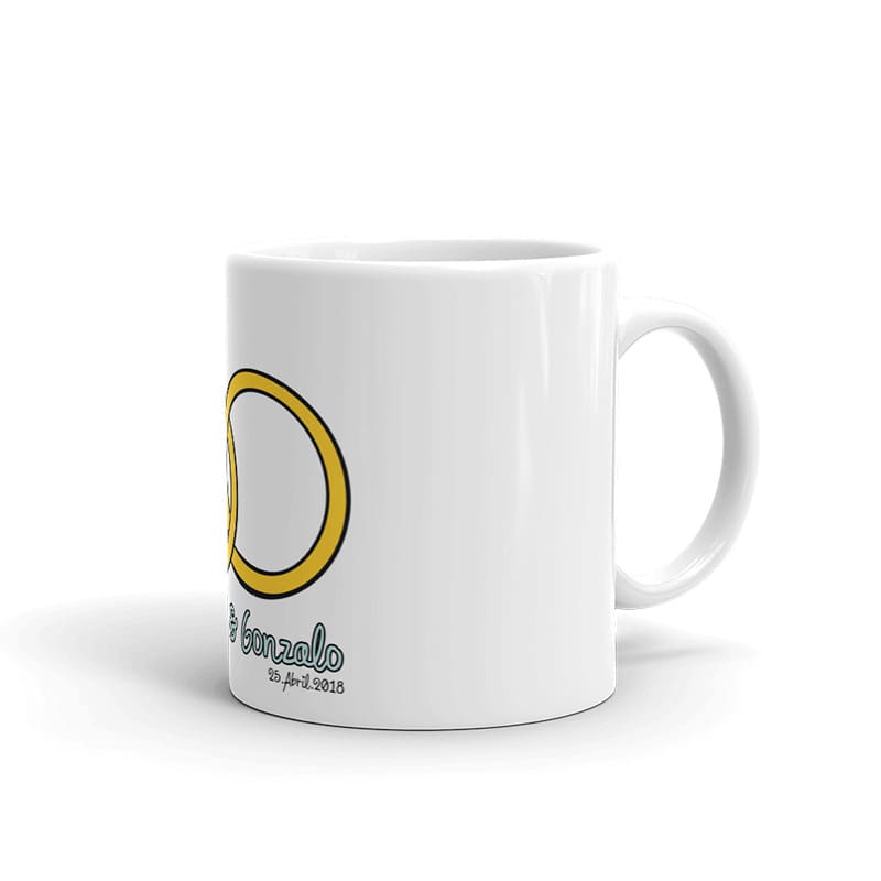 Taza para boda personalizada, modelo alianzas
