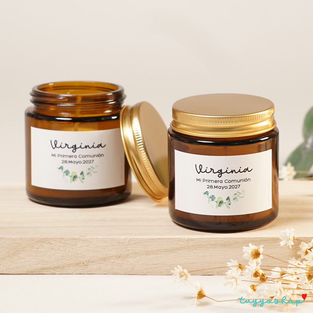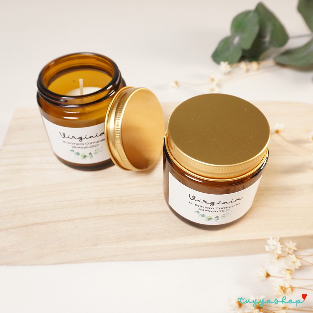 - Vela Ámbar en tarro de cristal, modelo eucalipto
