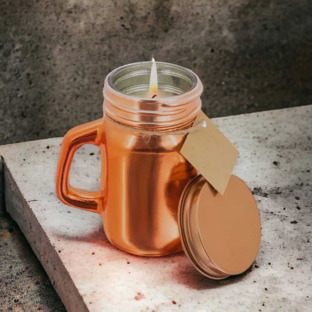 - Vela aromática presentada en tarro de vidrio y metal. Aroma canela