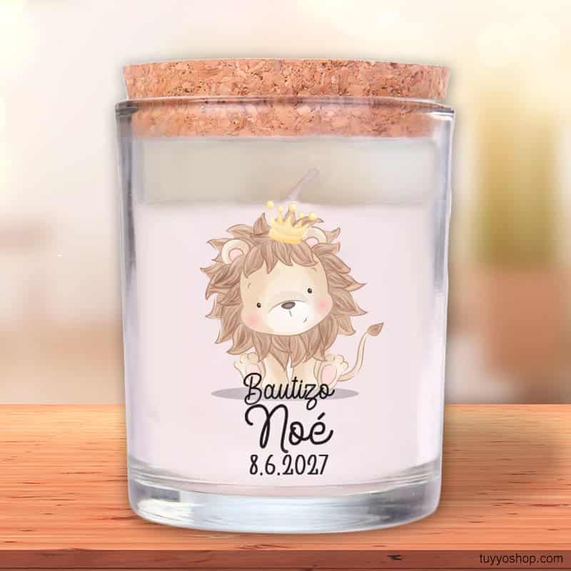 - Vela para bautizo. Rey León. Personalizable. Tapón de corcho.