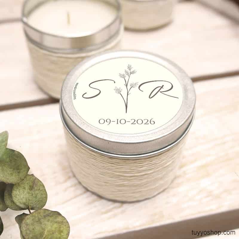 • Esta vela se puede personalizar las iniciales y la fecha del evento.