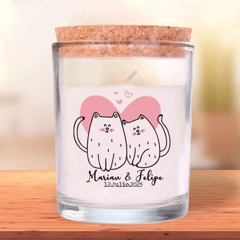 - Velas para boda personalizada, modelo cats, tapón de corcho
