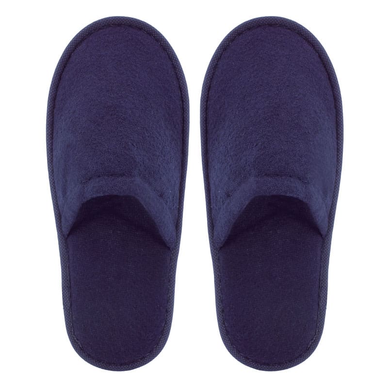Destaca en tu evento con un regalo original y diferente. Zapatillas de rizo cerradas con suela antideslizante. Disponibles en un precioso azul marino. Son de calidad y tus invitados la usarán en casa o para llevarlas de viaje. Siempre se acordarán de ti, de tu buen gusto a la hora de regalar y e lo bien que lo pasaron en tu evento.